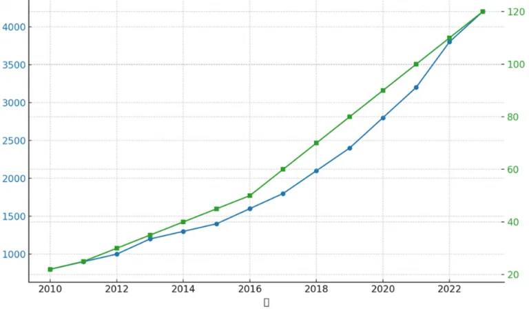 青線:署名機関数(件)/緑線:運用資産総額(兆ドル)